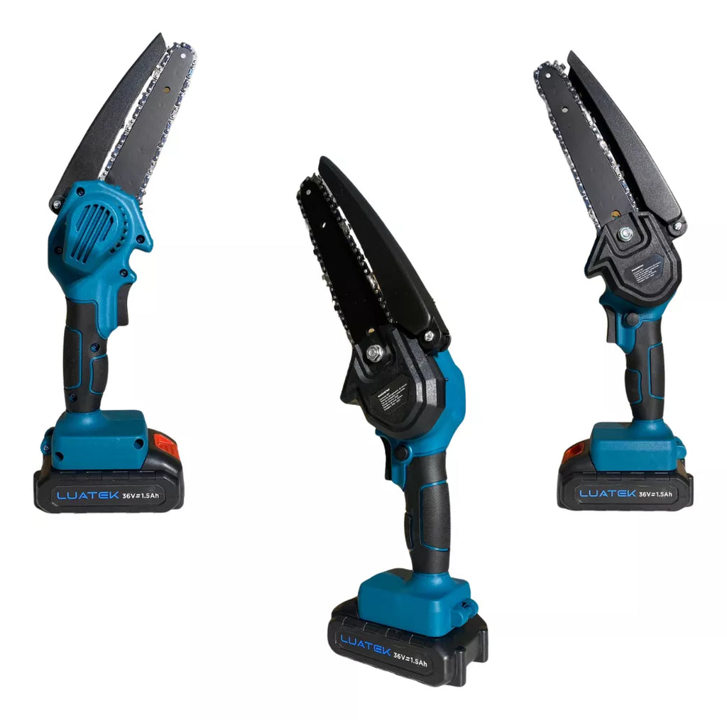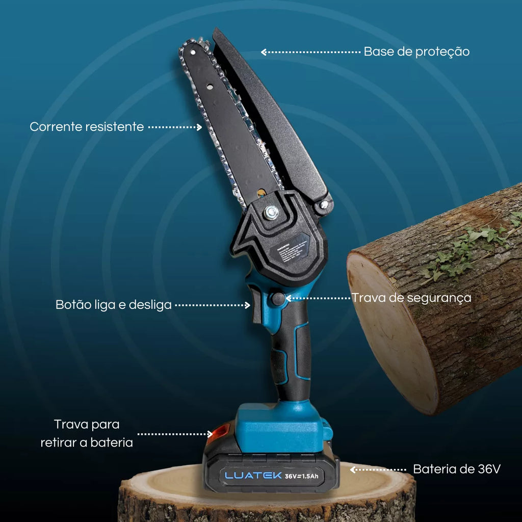 Mini Motosserra Elétrica Recarregável – Potente, Compacta e Sem Fio!