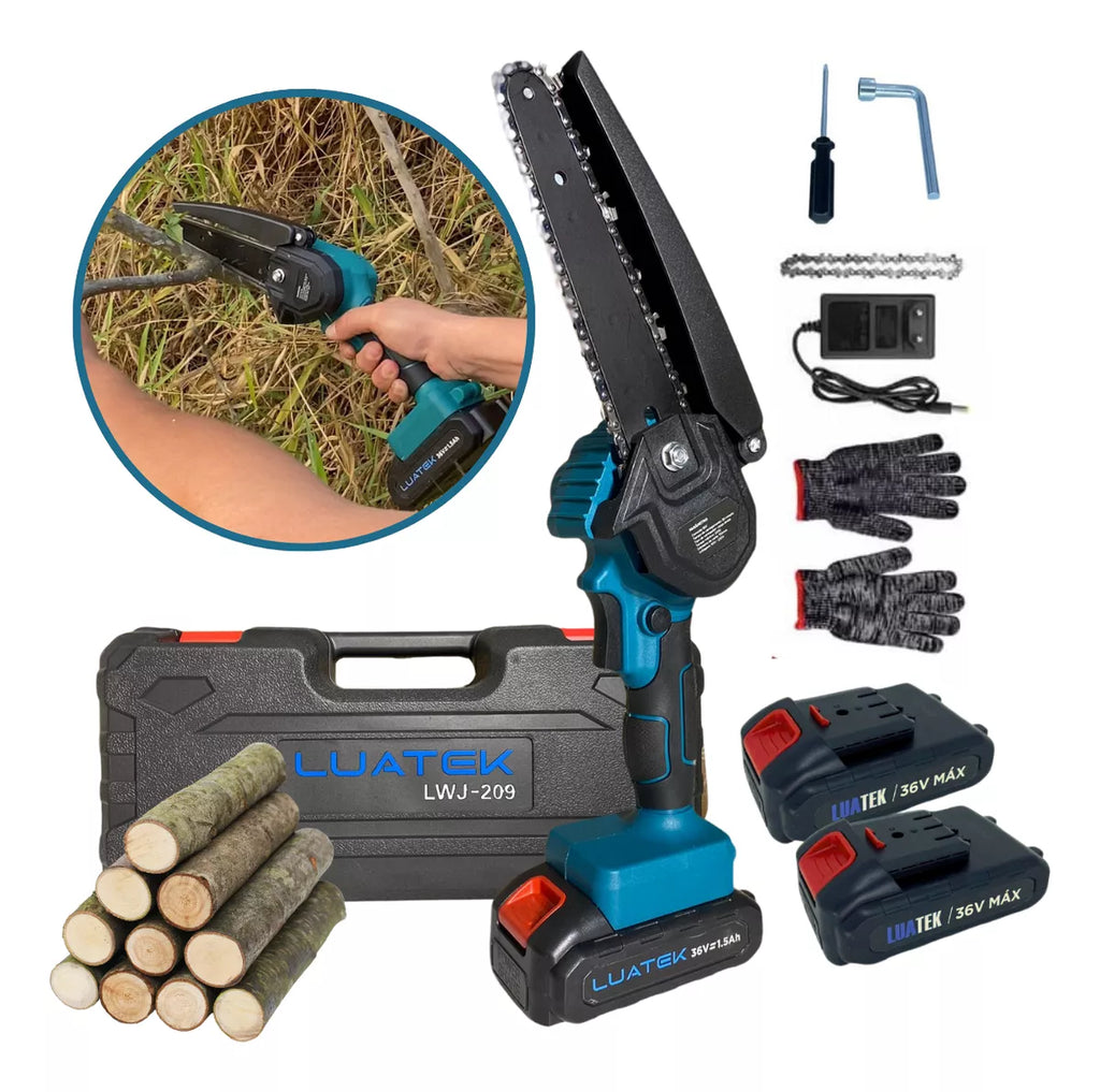 A Mini Motosserra Elétrica Recarregável é perfeita para quem busca praticidade e potência em um só equipamento. Com motor brushless de alto desempenho, ela garante cortes rápidos e eficientes em madeira, galhos e troncos, sendo ideal para jardinagem, carpintaria e uso doméstico.
